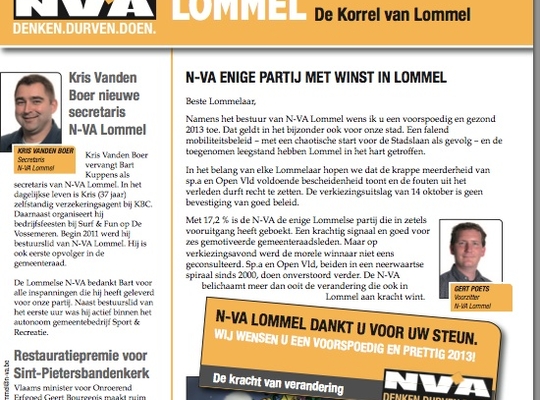Lees hier onze meest recente editie van De Korrel van Lommel, het lokale afdelingsblad van de N-VA.
